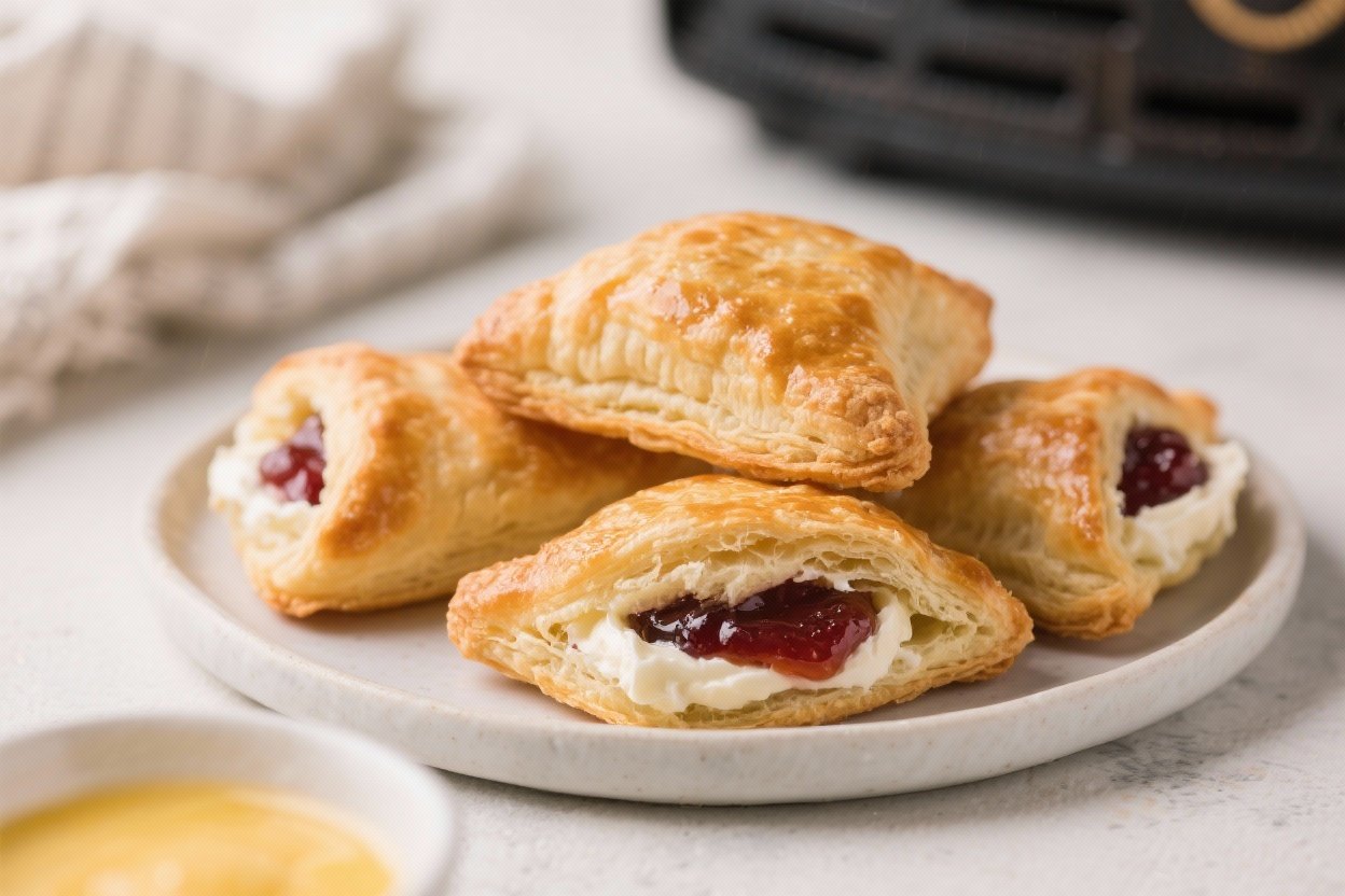 With a flaky shell and a creamy, fruity center, they’re an easy way to make any moment feel a little sweeter. Keep puff pastry and cream cheese on hand, and you’ll always have a fast treat ready for guests, kids, or just yourself. Warm from the air fryer, they’re hard to resist—and even harder not to make again tomorrow.