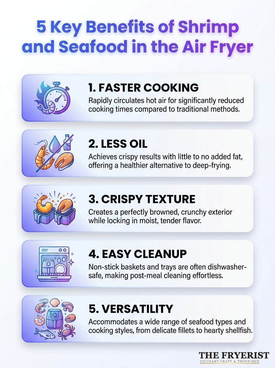 Discover the top 5 benefits of cooking shrimp and seafood in the air fryer. Fast, easy, and flavorful results.