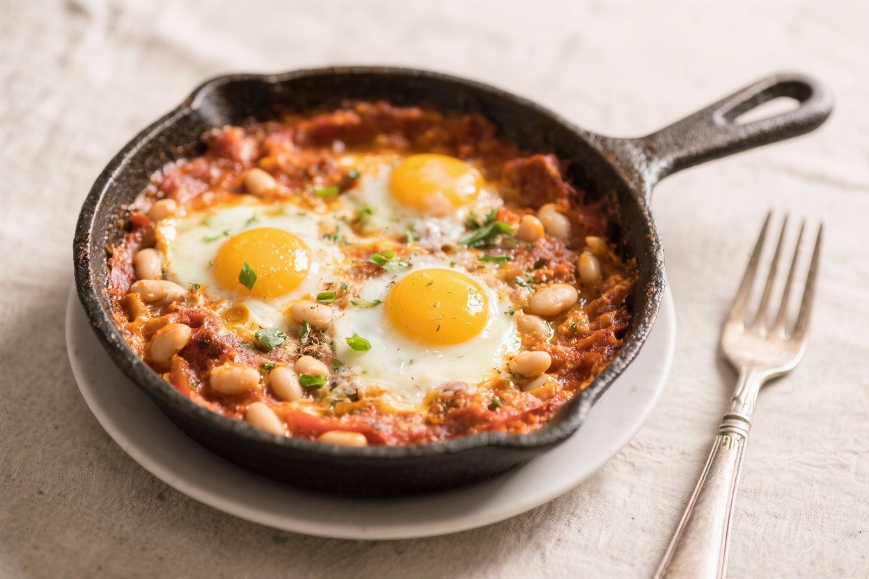 - Green shakshuka twist: Swap tomatoes for sautéed spinach, kale, and a splash of cream or broth; keep the beans for body.